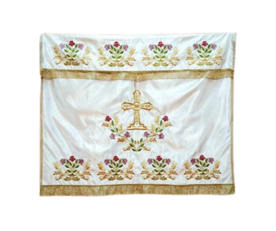 Υφασμάτινο κάλυμμα Αγίας Τράπεζας με χρυσοκέντητες λεπτομέρειες με χρυσοκλωστή και σχέδια εμπνευσμένα από την εκκλησιαστική παράδοση. Επικοινωνήστε για διαθεσιμότητα χρωμάτων και διαστάσεων. Ιδανικό για εκκλησίες και μοναστήρια, συνδυάζει ανθεκτικότητα, κομψότητα και μοναδικό σχέδιο που προσαρμόζεται τέλεια στις ανάγκες σας.