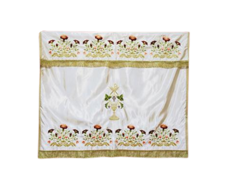 Υφασμάτινο κάλυμμα Αγίας Τράπεζας με χρυσοκέντητες λεπτομέρειες με χρυσοκλωστή και σχέδια εμπνευσμένα από την εκκλησιαστική παράδοση. Επικοινωνήστε για διαθεσιμότητα χρωμάτων και διαστάσεων. Ιδανικό για εκκλησίες και μοναστήρια, συνδυάζει ανθεκτικότητα, κομψότητα και μοναδικό σχέδιο που προσαρμόζεται τέλεια στις ανάγκες σας.