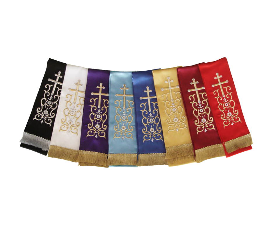 Υφασμάτινη κορδέλα ευαγγελίου από σατέν ή βελούδο με χρυσοκέντητες λεπτομέρειες με χρυσοκλωστή και σχέδια εμπνευσμένα από την εκκλησιαστική παράδοση. Διατίθεται σε ποικιλία χρωμάτων. Ιδανική για εκκλησίες και μοναστήρια, συνδυάζει ανθεκτικότητα, κομψότητα και μοναδικό σχέδιο που προσαρμόζεται τέλεια στις ανάγκες σας.