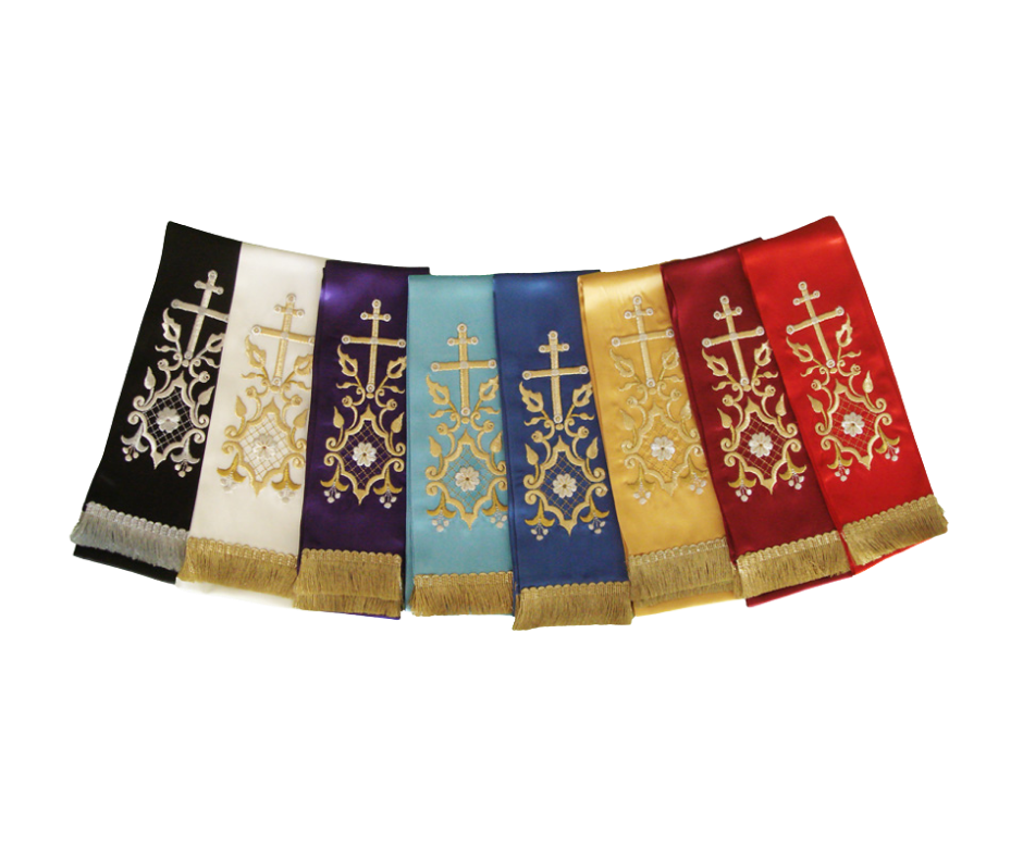 Υφασμάτινη κορδέλα ευαγγελίου από σατέν ή βελούδο με χρυσοκέντητες λεπτομέρειες με χρυσοκλωστή και σχέδια εμπνευσμένα από την εκκλησιαστική παράδοση. Διατίθεται σε ποικιλία χρωμάτων. Ιδανική για εκκλησίες και μοναστήρια, συνδυάζει ανθεκτικότητα, κομψότητα και μοναδικό σχέδιο που προσαρμόζεται τέλεια στις ανάγκες σας.