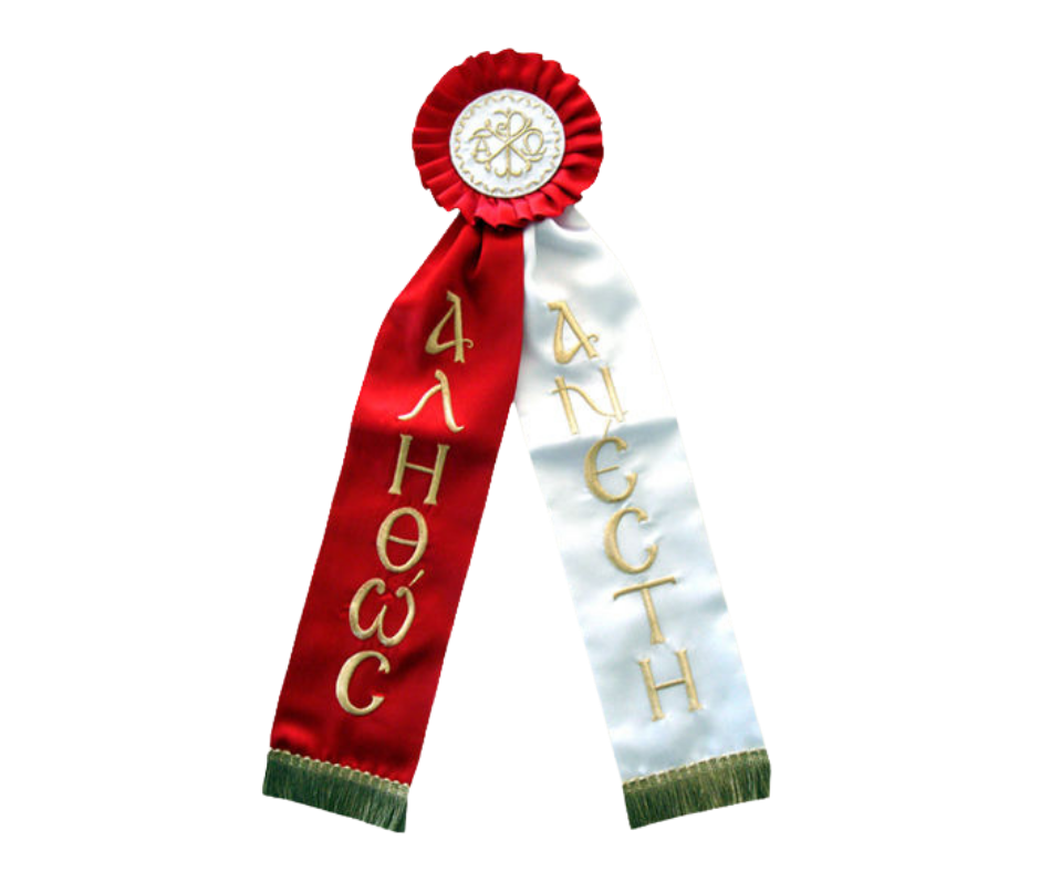 Υφασμάτινη κορδέλα στολισμού από σατέν με χρυσοκέντητες λεπτομέρειες με χρυσοκλωστή και μήνυμα “Αληθώς Ανέστη”. Ιδανική για εκκλησίες και μοναστήρια, συνδυάζει ανθεκτικότητα, κομψότητα και μοναδικό σχέδιο που προσαρμόζεται τέλεια στις ανάγκες σας.
