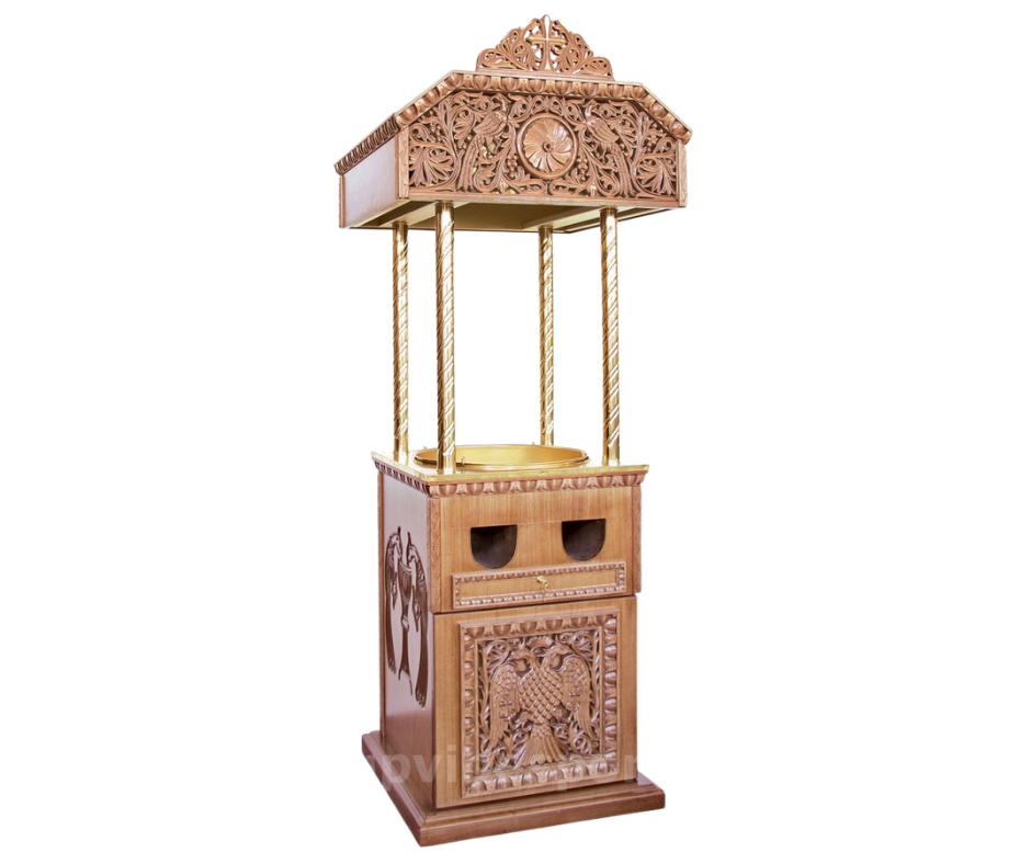 Ξυλόγλυπτο μανουάλι απορροφητικό με έναν δίσκο και εσωτερική κεροθήκη, φτιαγμένο με υψηλή τεχνοτροπία και διακοσμημένο με μοναδικά σκαλίσματα εμπνευσμένα από την εκκλησιαστική παράδοση. Ιδανικό για εκκλησίες και μοναστήρια, συνδυάζει ανθεκτικότητα, κομψότητα και μοναδικό σχέδιο που προσαρμόζεται τέλεια στις ανάγκες σας.