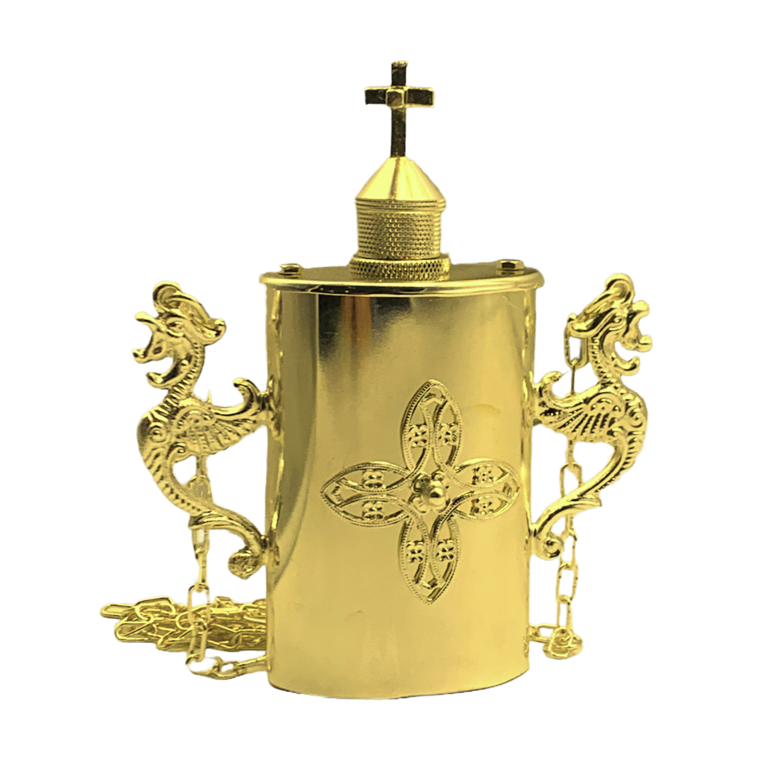Μεταλλικό μυροδοχείο σε χρυσό χρώμα.