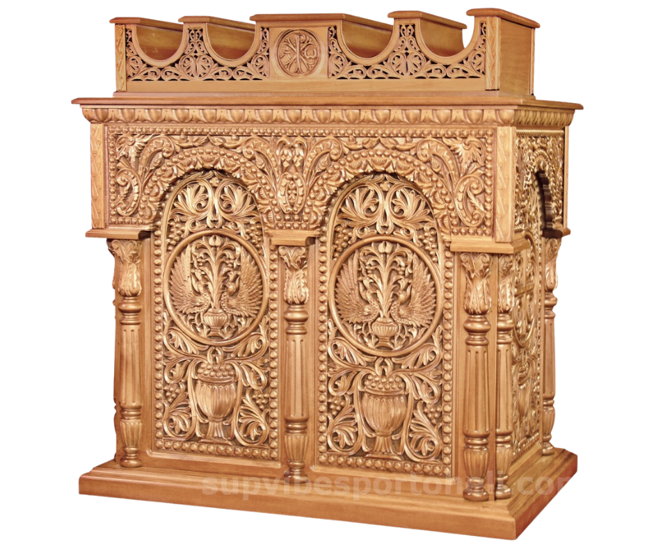 Ξυλόγλυπτο παγκάρι, φτιαγμένο με υψηλή τεχνοτροπία και διακοσμημένο με μοναδικά σκαλίσματα εμπνευσμένα από την εκκλησιαστική παράδοση. Ιδανικό για εκκλησίες και μοναστήρια, συνδυάζει ανθεκτικότητα, κομψότητα και μοναδικό σχέδιο που προσαρμόζεται τέλεια στις ανάγκες σας.