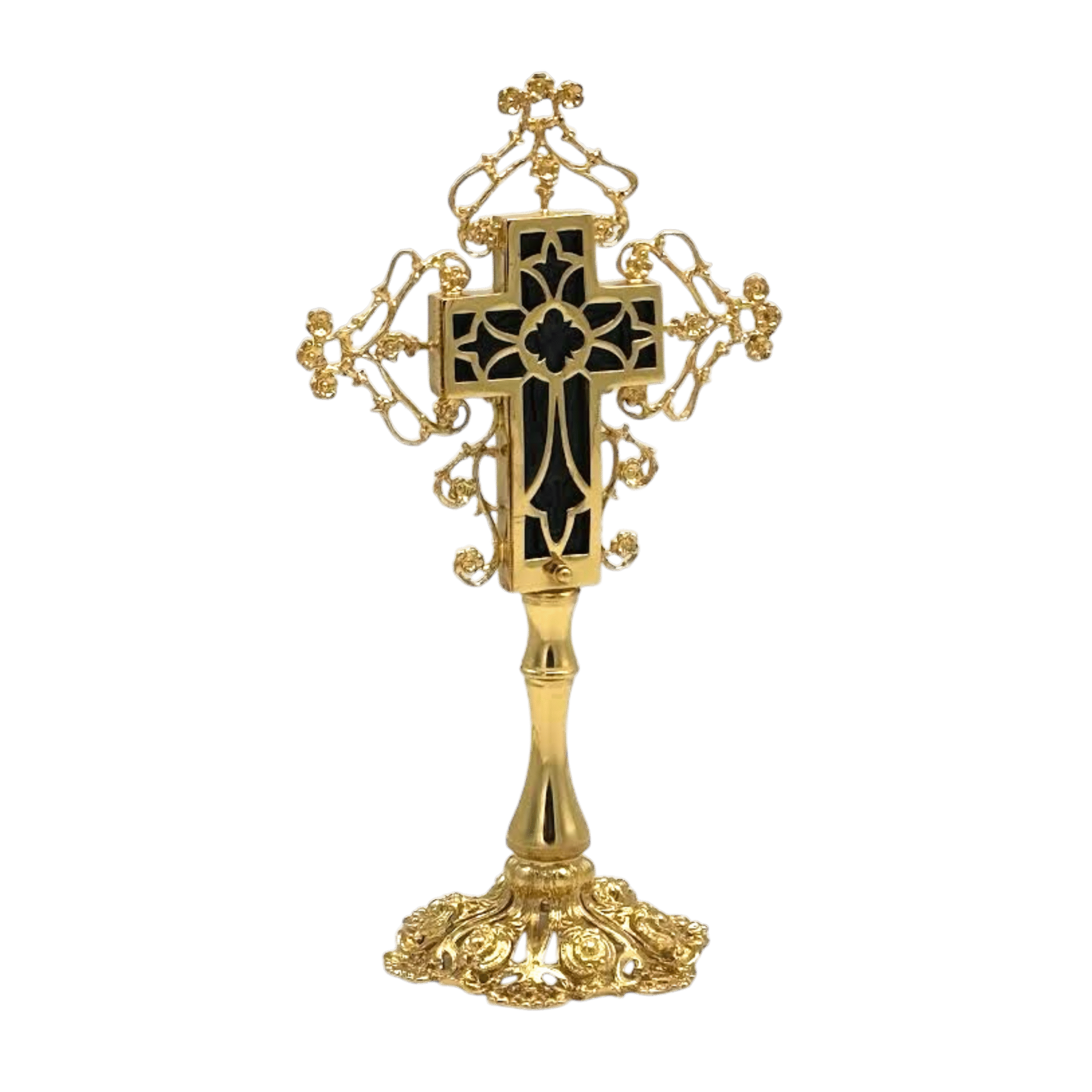 Μεταλλικός σταυρός αγιασμού σε χρυσό χρώμα.