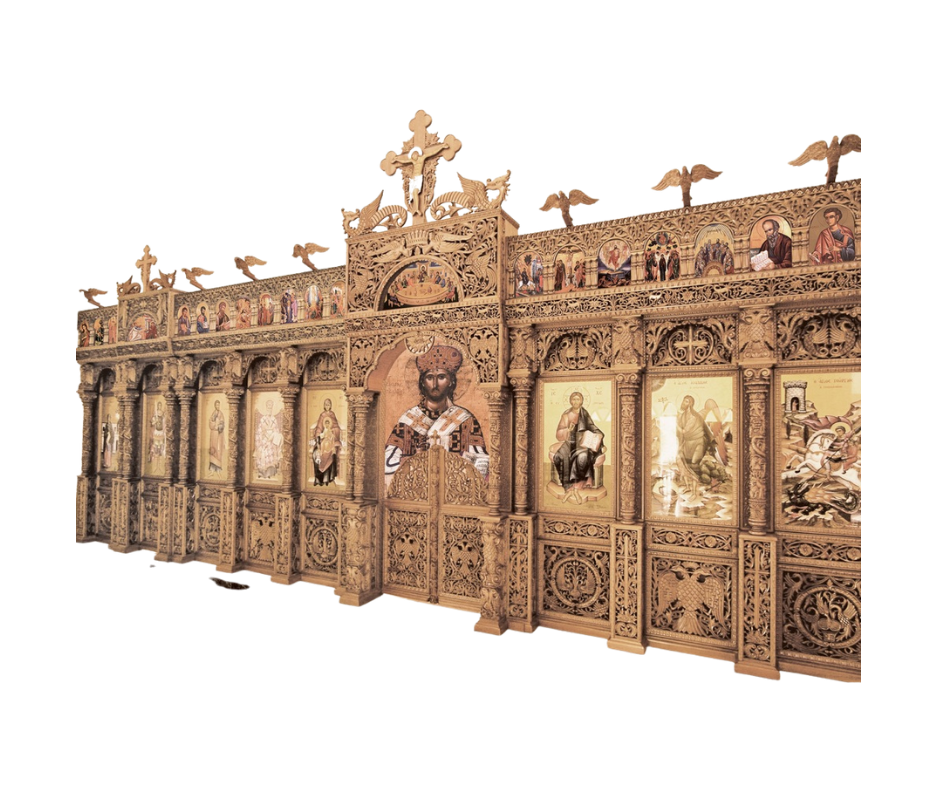 Ξυλόγλυπτο τέμπλο μπαρόκ ρυθμού, φτιαγμένο με υψηλή τεχνοτροπία και διακοσμημένο με μοναδικά σκαλίσματα εμπνευσμένα από την εκκλησιαστική παράδοση. Ιδανικό για εκκλησίες και μοναστήρια, συνδυάζει ανθεκτικότητα, κομψότητα και μοναδικό σχέδιο που προσαρμόζεται τέλεια στις ανάγκες σας.