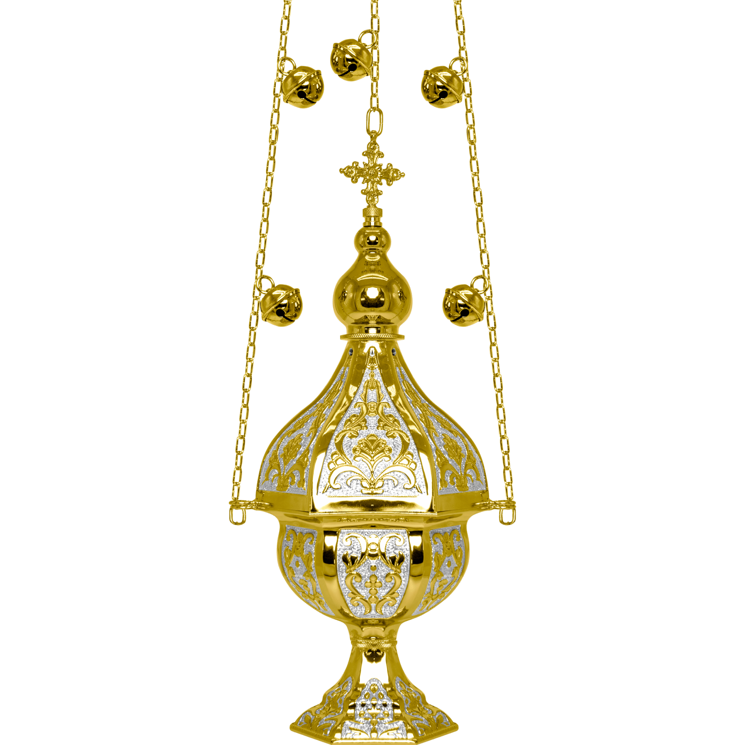 Μεταλλικό θυμιατό σε διχρωμία χρυσό – ασημί, διακοσμημένο με μοναδικά σκαλίσματα. Διατίθεται σε δύο διαφορετικά μεγέθη.