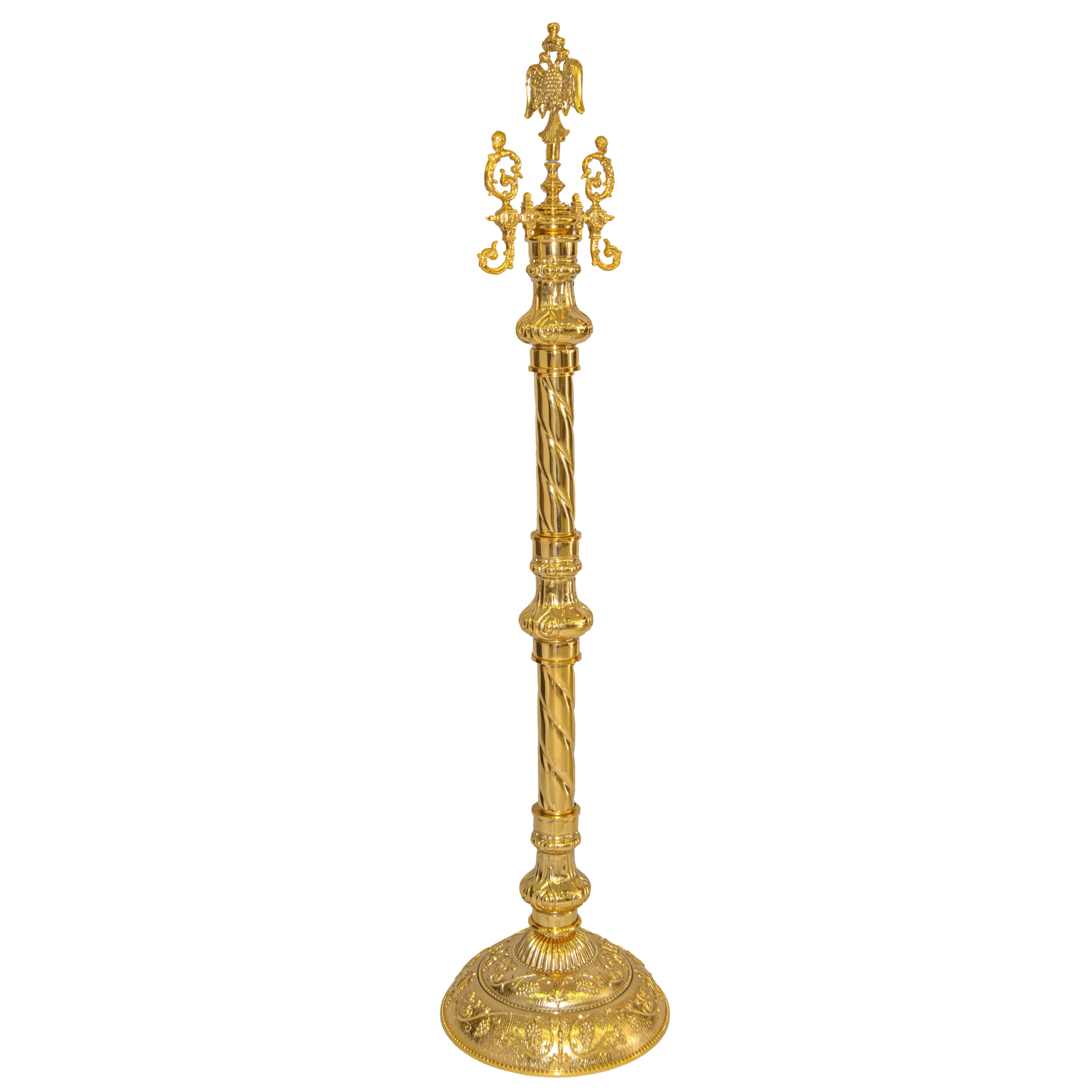 Μεταλλική βάση διαδρόμου σε χρυσό χρώμα, διακοσμημένη με μοναδικά σκαλίσματα και δικέφαλο αετό στο άνω μέρος.